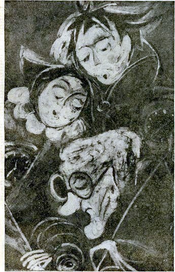 So steht es in dem Märchen von E.T. A. Hoffmann: „Nußknacker und Mäusekönig" im Kapitel „Pate Drosselmeier beschert die Kinder". Was er ihnen beschert und wie das Spielzeug in der Weihnachtsnacht zum Leben erwacht, das kennen die meisten Kinder und Erwachsenen aus dem berühmten Nußknacker-Ballett von Peter Tschaikowski. Das poetische Märchen, in dem der große Romantiker so trefflich den Kinderton traf, wird heutzutage seltener gelesen oder auch einmal vorgelesen. Umso verdienstvoller, daß Elisabeth Kaiser-Arentz, eine Batik-Künstlerin, die zur Zeit im Wormser Kunsthaus Heylshof ausstellt, unter vielen anderen, viel zu wenig bekannten auch diesem reizvollen romantischen Märchen Form und Farbe gibt. Genau die Szene von den Uhren, in die Pate Drosselmeier mit spitzigen Instrumenten sticht, hat sie herausgegriffen. Die Runzeln, das zugeklebte Brillenglas, der Altmännerkopf ohne Perücke machen den Paten charakteristisch. Und wie wehe der Marie und ihrem Bruder die ,,Operation" der Uhren tut, spürt man auf Anhieb.